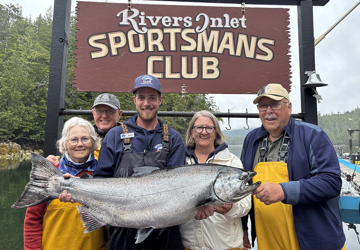 Guide Jakob who joined our Sportsman’s team in 2018 reported that his guests caught a BIG salmon on July 7, 2025: “Got the 42.5 pounder at The Wall, just after coming out of Jackson’s Hole, 77ft on the downrigger, using a black flasher and a maverick spoon!